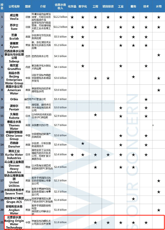 在這份“全球水務(wù)領(lǐng)域營收TOP40公司排名”榜單中,法國最大的私營水務(wù)運(yùn)營商、美國最大的工程技術(shù)公司、巴西最大的私營水務(wù)特許經(jīng)營商和英國最大的受監(jiān)管類水司均位列其中,碧水源在國際水務(wù)市場(chǎng)與國際水務(wù)巨頭進(jìn)一步拉近實(shí)力差距,影響力顯著提升。