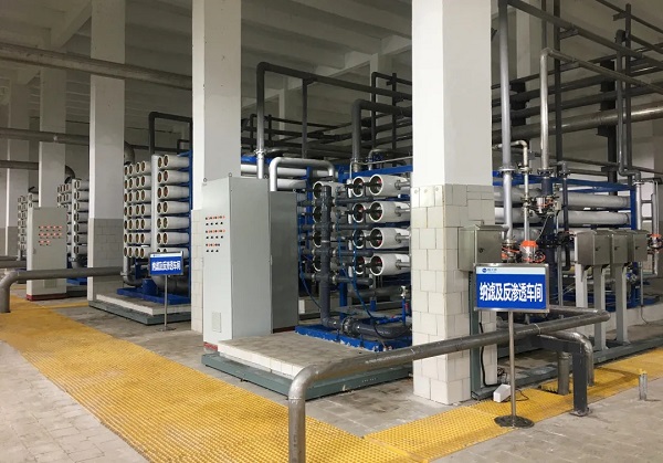 本工藝設計在能耗及產(chǎn)水率等方面優(yōu)于傳統(tǒng)“超濾-反滲透”雙膜工藝,在極低的操作壓力下實現(xiàn)高水通量和高脫鹽率,在滿足用戶對水質(zhì)要求的前提下,更好的節(jié)能降耗,處理出水達《地表水水環(huán)境質(zhì)量標準》(GB3838-2002)中Ⅱ類標準,出水輸送給周邊電廠等企業(yè)回用,減少其對自來水的使用量,對解決青島地區(qū)水環(huán)境污染、水資源短缺具有借鑒意義。